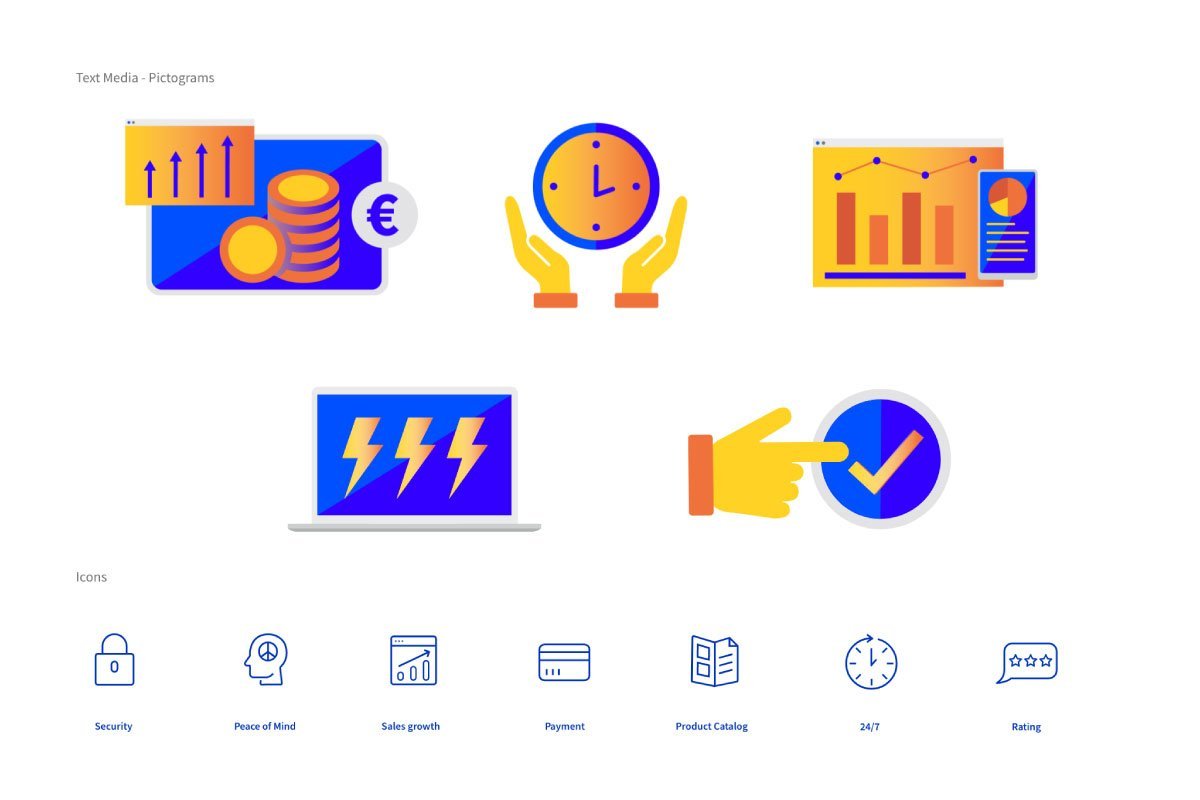 OVH Cloud - Text Media and icons developed to highlight topics across digital assets and landing pages.